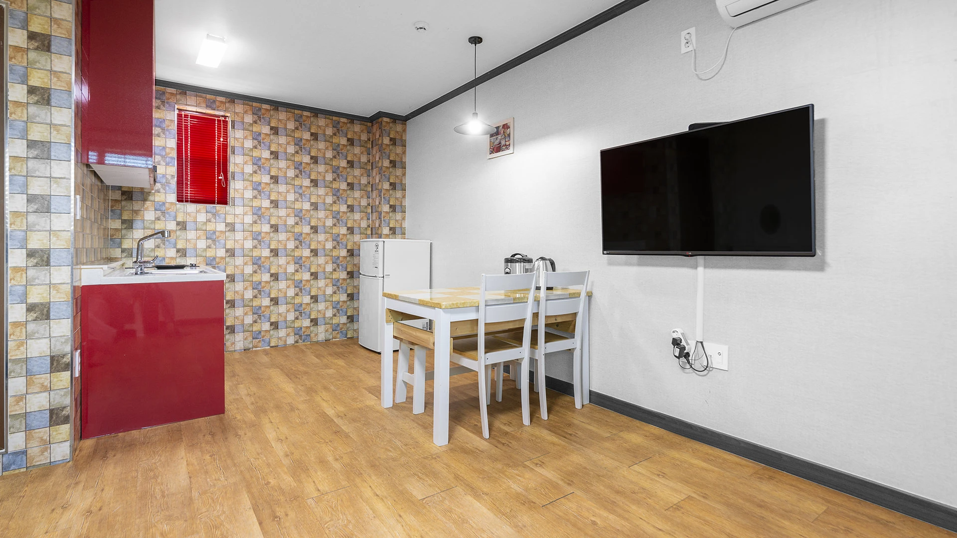 - 집기품목 : TV, 냉장고, 세면도구, 에어컨, 취사시설/도구, 개별바비큐, 테라스, 화장대, 전기밥솥, 인덕션, 드라이기, 바디워시, 치약, 타월, 린스, 샴푸, 욕실용품, VOD